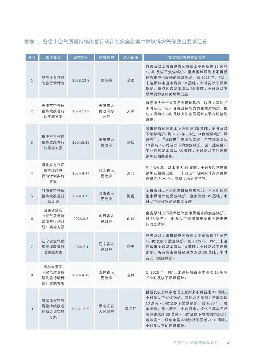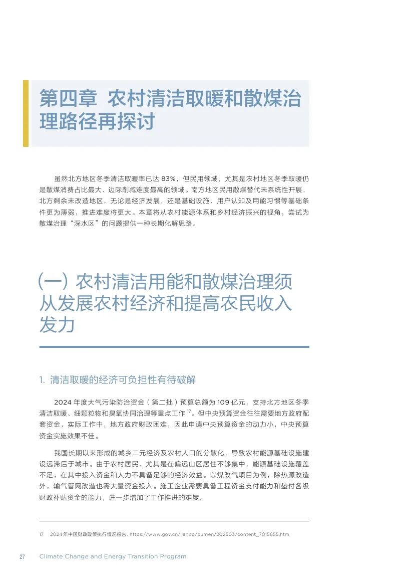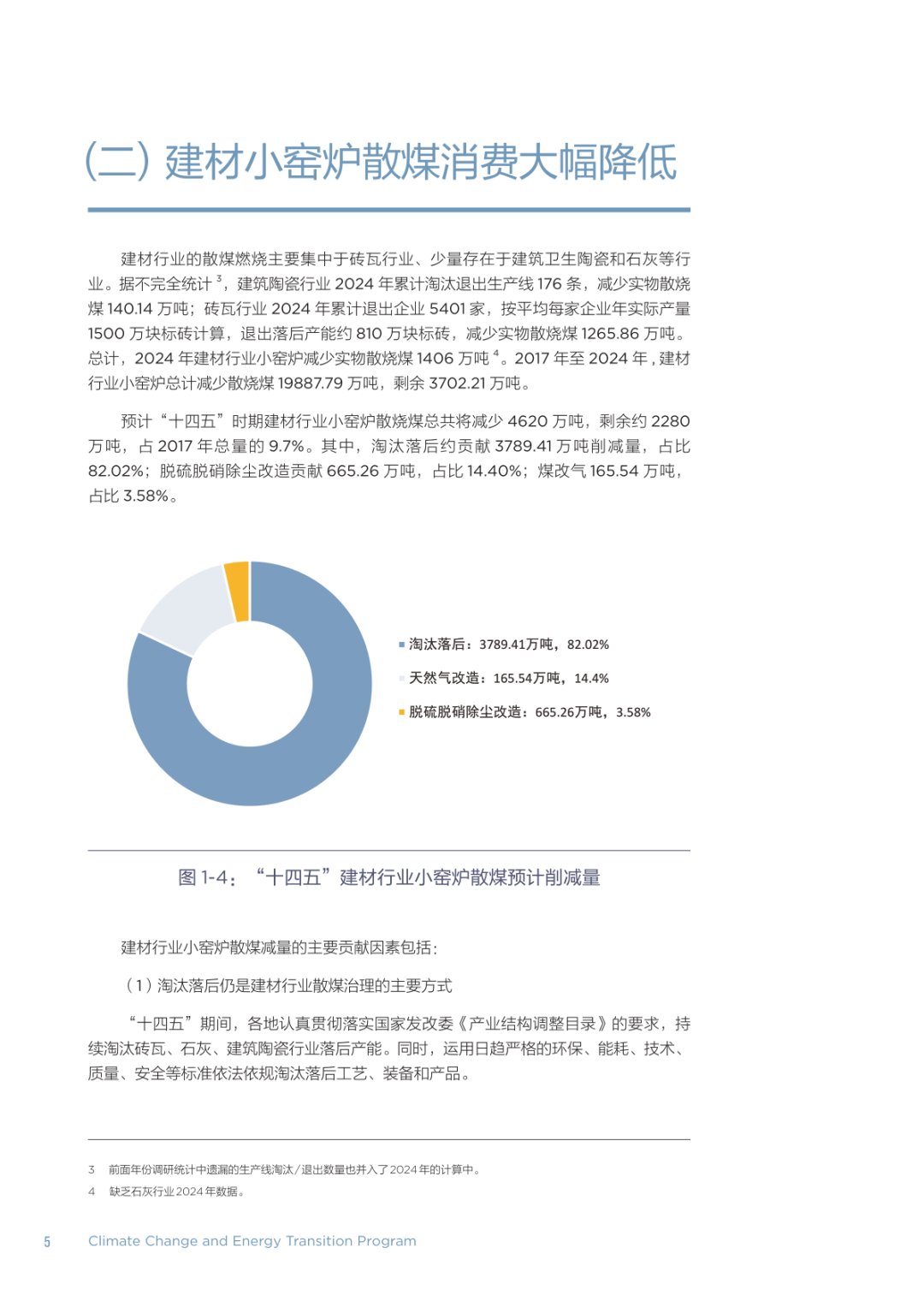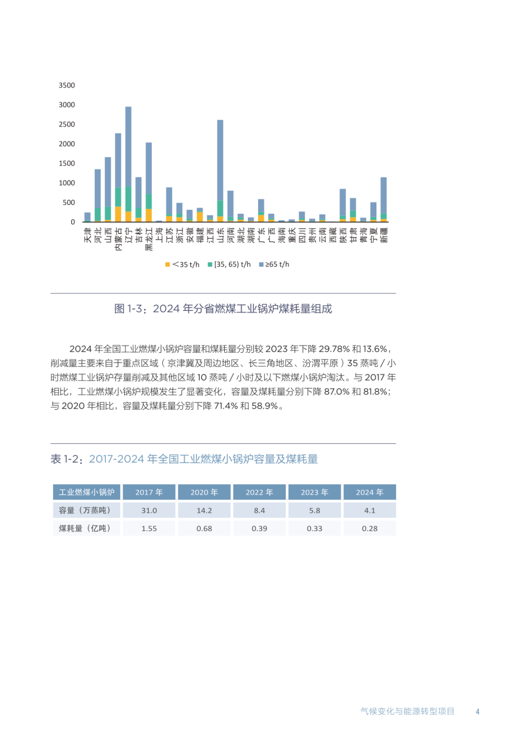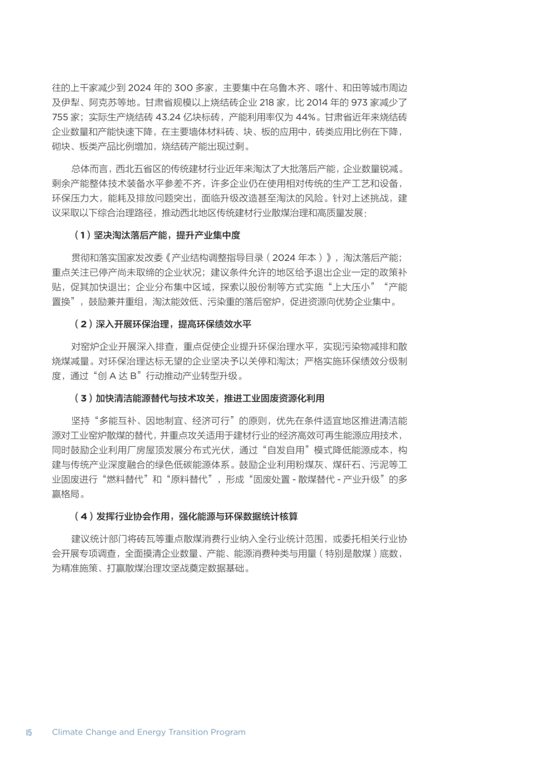 报告聚焦 “十四五” 散煤治理成效、区域特征与经济健康协同效应,提出农村清洁取暖与能源转型路径,为 “十五五” 治理提供方向。报告先总结 “十四五” 治理成果。全国散煤削减超 4 亿吨,PM2.5 平均浓度降至 30 微克 / 立方米以下。工业小锅炉散煤消费从 2017 年 1.55 亿吨降至 2024 年 0.28 亿吨,35 蒸吨 / 小时以下锅炉成淘汰重点;建材小窑炉减少散煤 1.99 亿吨,砖瓦行业淘汰 5401 家企业;北方农村清洁取暖改造 4100 万户,清洁取暖率达 83%,可再生能源采暖替代散煤 2102 万吨,地热占比 62%。核心内容围绕西北地区治理与协同效应展开。西北地区工业小锅炉 2024 年煤耗 353 万吨,预计 2035 年降至 106-131 万吨,需差异化淘汰与末端治理升级;建材小窑炉企业数量锐减,但剩余产能能效低,需推动清洁能源替代;农村清洁取暖率 25%-30%,受严寒、经济弱等制约,返煤率 50%-80%,需适配技术与建筑节能协同。