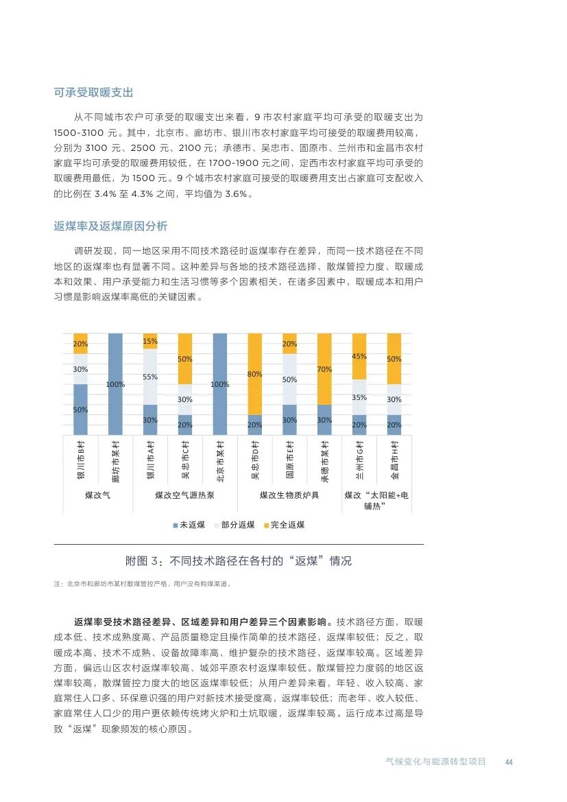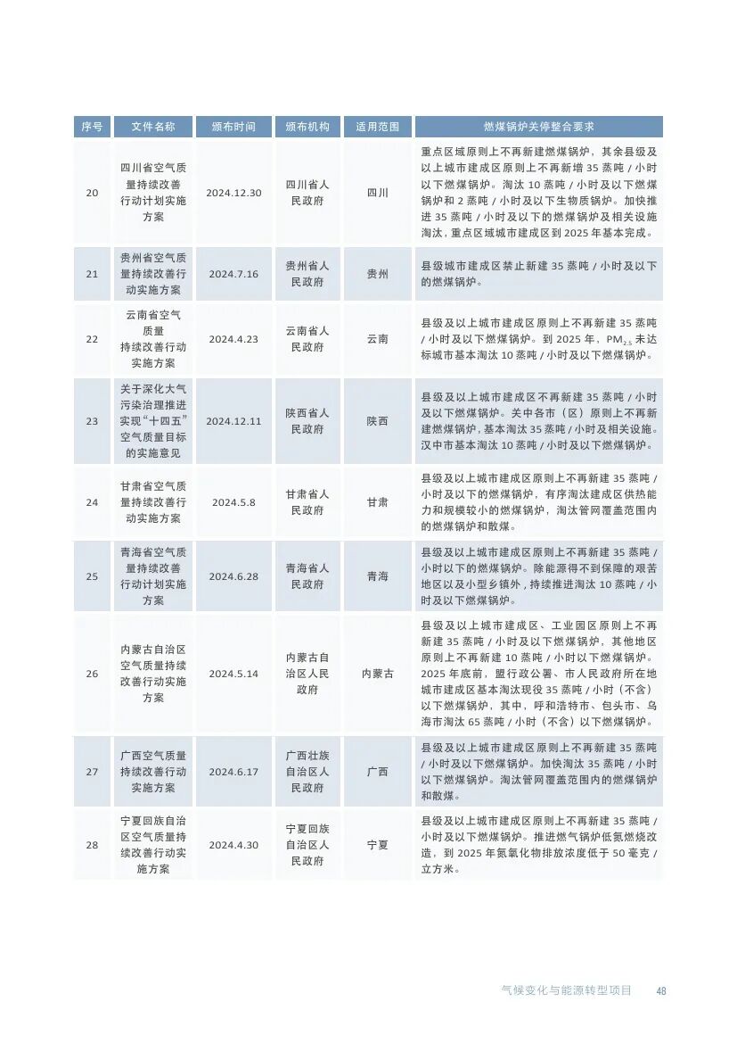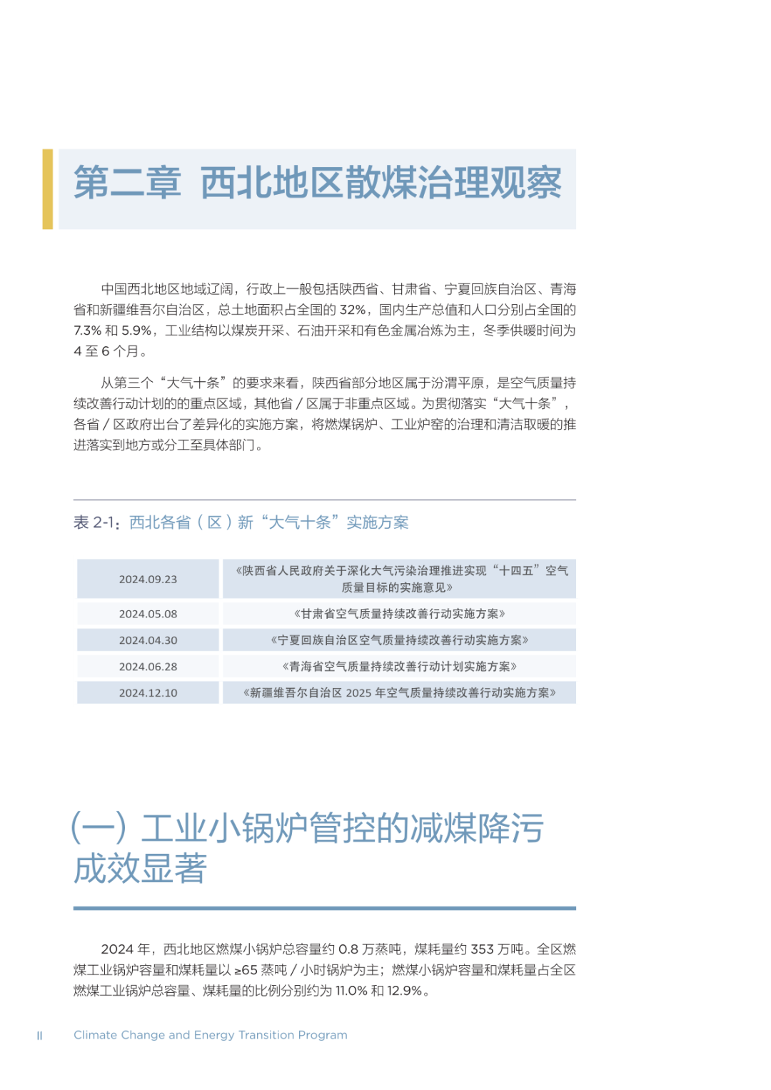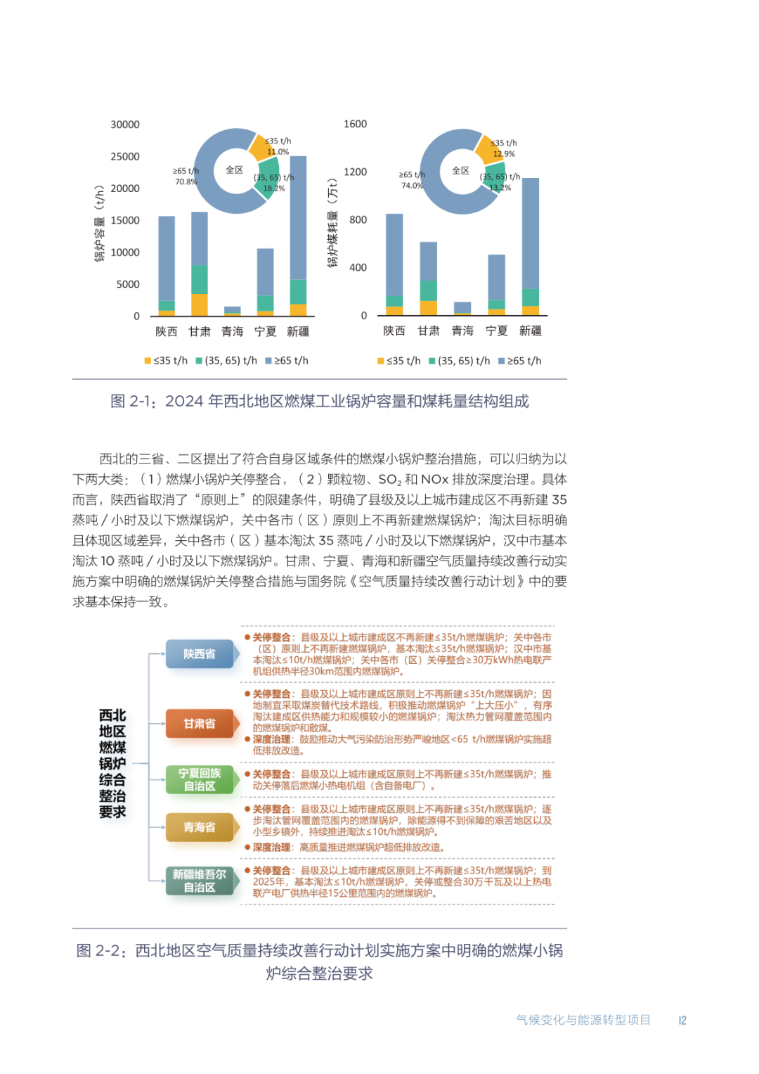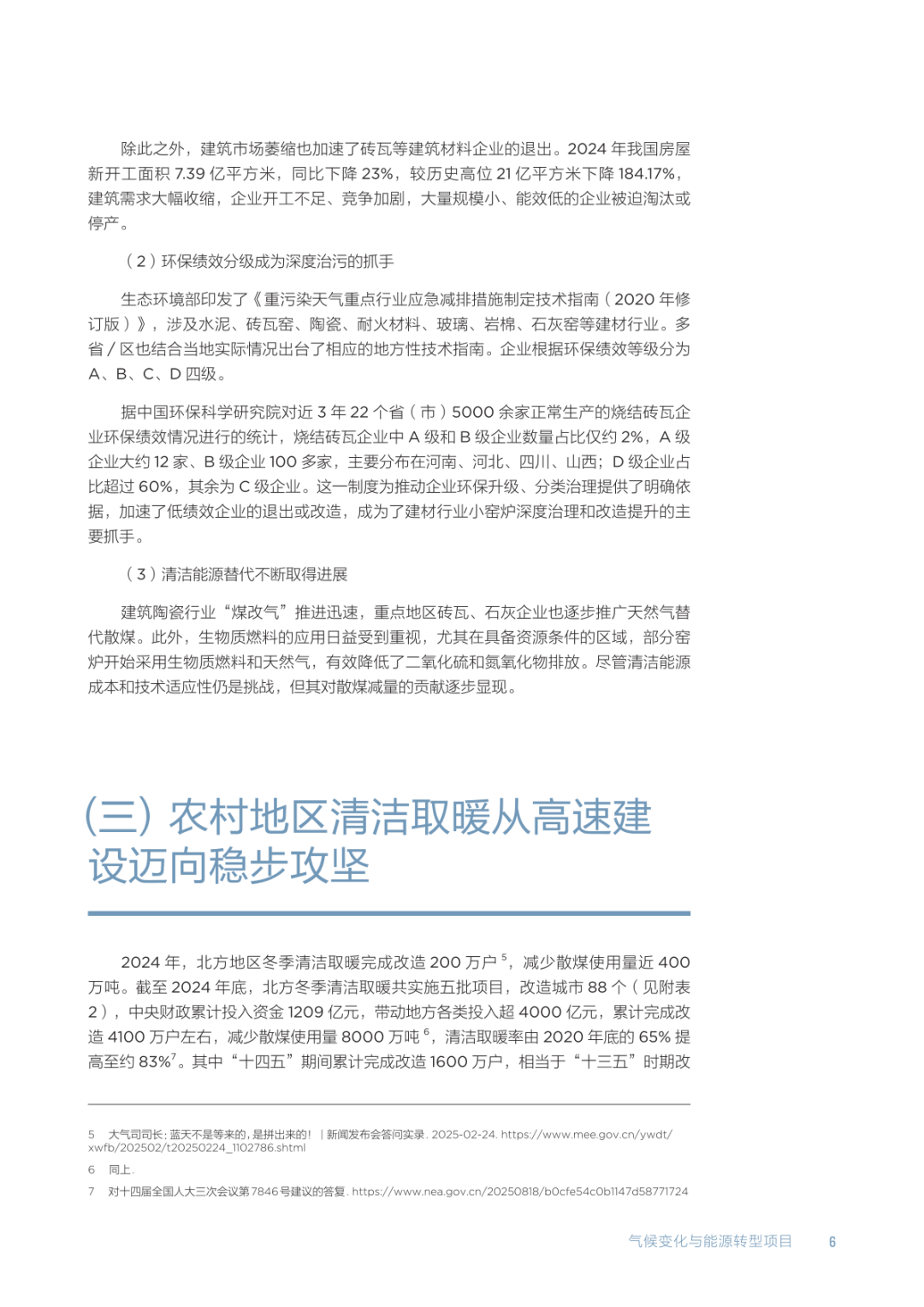 报告聚焦 “十四五” 散煤治理成效、区域特征与经济健康协同效应,提出农村清洁取暖与能源转型路径,为 “十五五” 治理提供方向。报告先总结 “十四五” 治理成果。全国散煤削减超 4 亿吨,PM2.5 平均浓度降至 30 微克 / 立方米以下。工业小锅炉散煤消费从 2017 年 1.55 亿吨降至 2024 年 0.28 亿吨,35 蒸吨 / 小时以下锅炉成淘汰重点;建材小窑炉减少散煤 1.99 亿吨,砖瓦行业淘汰 5401 家企业;北方农村清洁取暖改造 4100 万户,清洁取暖率达 83%,可再生能源采暖替代散煤 2102 万吨,地热占比 62%。核心内容围绕西北地区治理与协同效应展开。西北地区工业小锅炉 2024 年煤耗 353 万吨,预计 2035 年降至 106-131 万吨,需差异化淘汰与末端治理升级;建材小窑炉企业数量锐减,但剩余产能能效低,需推动清洁能源替代;农村清洁取暖率 25%-30%,受严寒、经济弱等制约,返煤率 50%-80%,需适配技术与建筑节能协同。