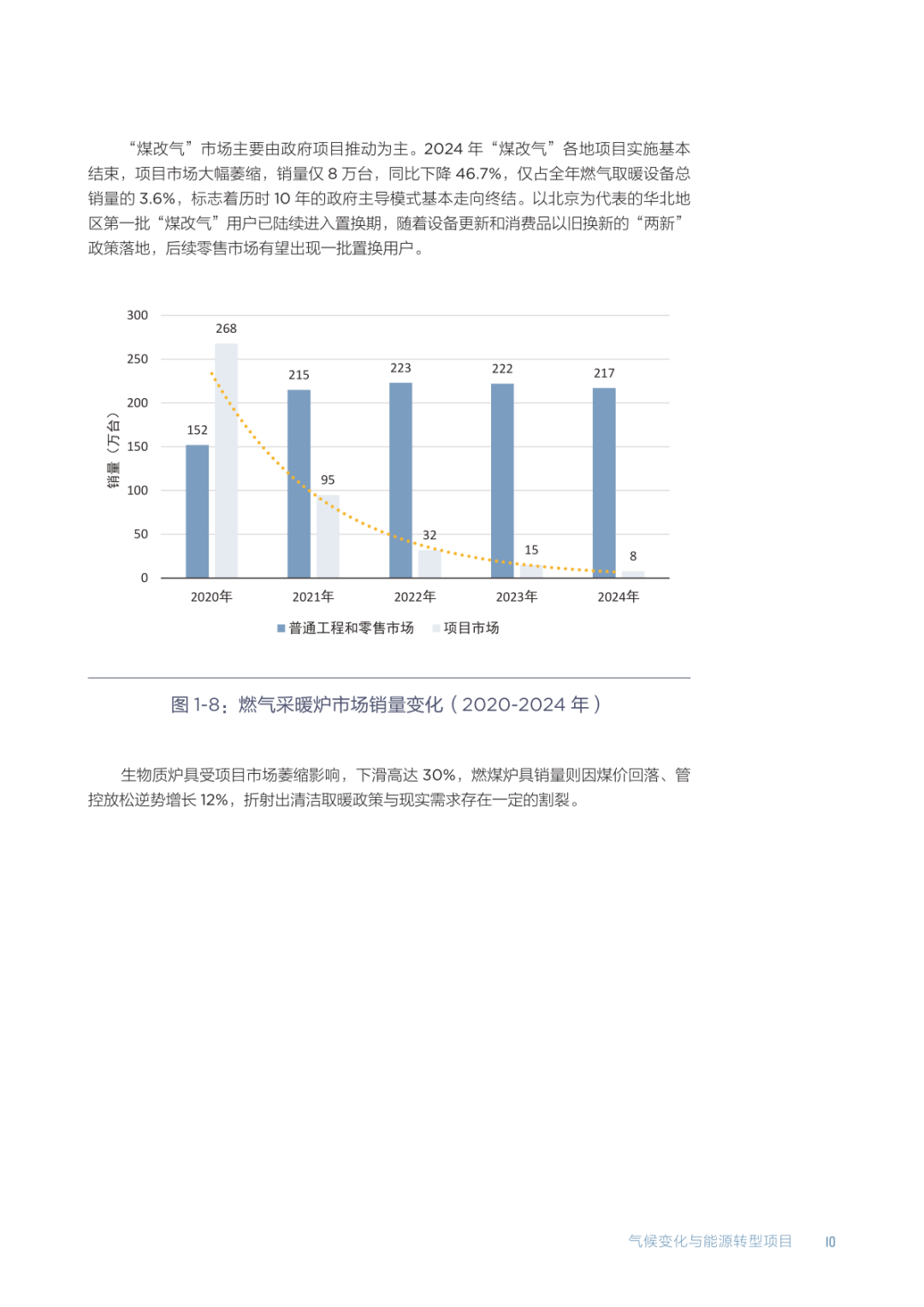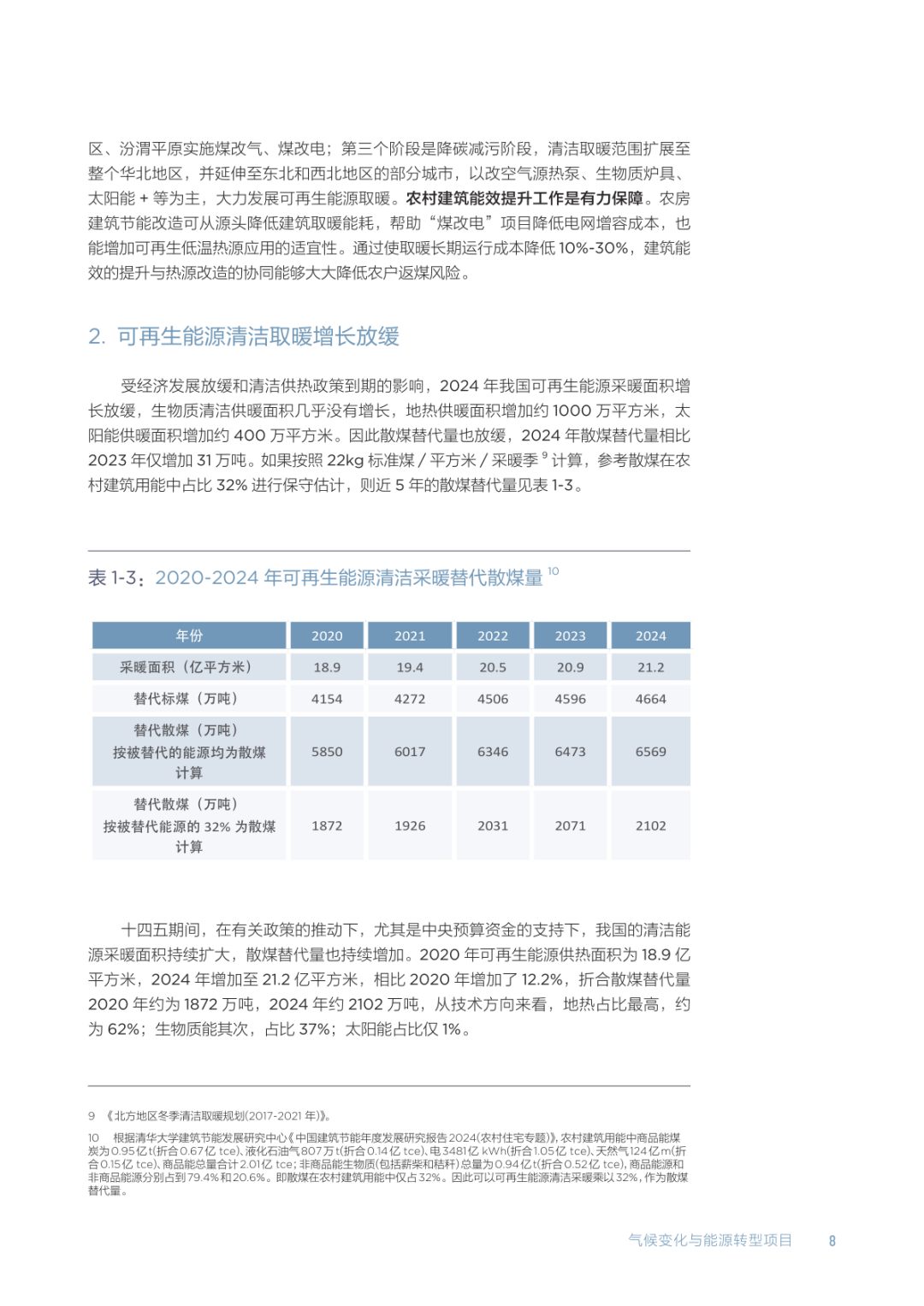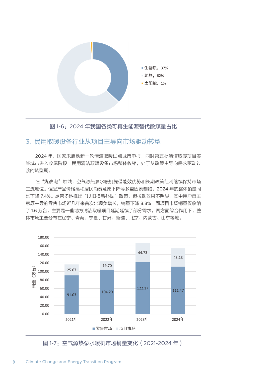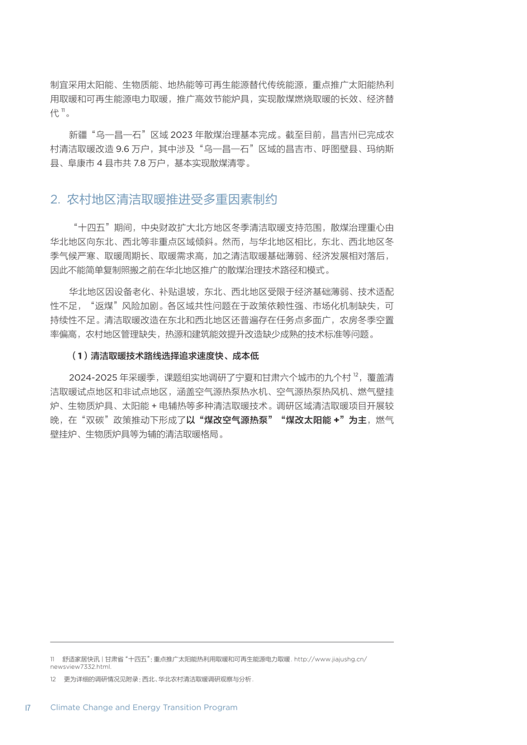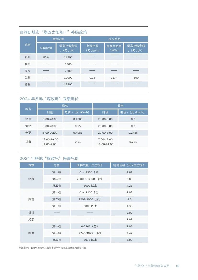 报告聚焦 “十四五” 散煤治理成效、区域特征与经济健康协同效应,提出农村清洁取暖与能源转型路径,为 “十五五” 治理提供方向。报告先总结 “十四五” 治理成果。全国散煤削减超 4 亿吨,PM2.5 平均浓度降至 30 微克 / 立方米以下。工业小锅炉散煤消费从 2017 年 1.55 亿吨降至 2024 年 0.28 亿吨,35 蒸吨 / 小时以下锅炉成淘汰重点;建材小窑炉减少散煤 1.99 亿吨,砖瓦行业淘汰 5401 家企业;北方农村清洁取暖改造 4100 万户,清洁取暖率达 83%,可再生能源采暖替代散煤 2102 万吨,地热占比 62%。核心内容围绕西北地区治理与协同效应展开。西北地区工业小锅炉 2024 年煤耗 353 万吨,预计 2035 年降至 106-131 万吨,需差异化淘汰与末端治理升级;建材小窑炉企业数量锐减,但剩余产能能效低,需推动清洁能源替代;农村清洁取暖率 25%-30%,受严寒、经济弱等制约,返煤率 50%-80%,需适配技术与建筑节能协同。