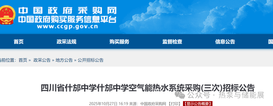 项目名称:什邡中学空气能热水系统采购(三次)