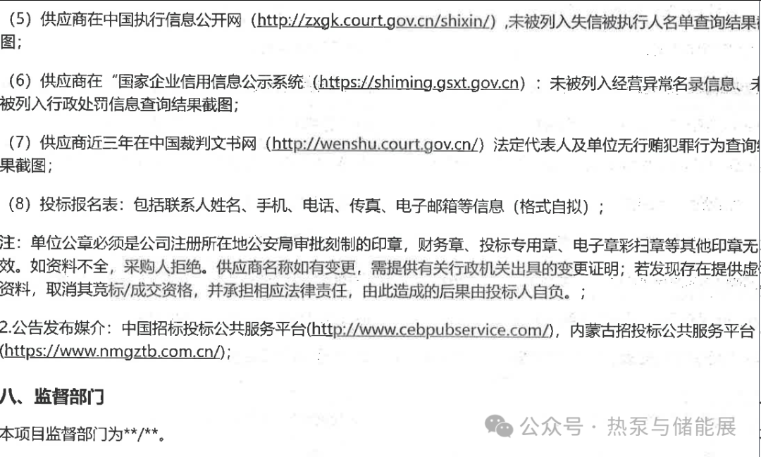 3.2.1投标人应提供近三年内(2022年1月至投标截止时间)非试验项目案例,所提供单台螺杆式压缩式热泵出水温度在60℃以上的应用案例,且业绩良好,自投产日期起一个供暖期平稳运行,并提供相应的证明材料(包括合同及对应的发票、用户盖章的使用评价报告:报告内容应包含所供设备的详细类型(压缩机型式)、主要技术参数(至少含:设计工况的热泵COP值及热泵出水温度、平稳运行时长、单台热泵供热能力、被加热介质)、运行数据照片需显示使用侧出水温度不低于60℃的界面、投入实际运行的工程主管部门的名称、应用地点等。业主保留证实所供设备性能的权力,如有必要,可到现场调查。