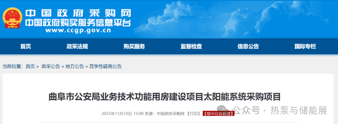 6、采购需求:曲阜市公安局业务技术功能用房建设项目太阳能系统采购项目主要内容包括图纸及清单范围内的太阳能系统采购、运输、安装、调试、验收及相关保修的全部内容。具体采购内容及要求详见竞争性磋商文件第三章“项目说明及要求”。
