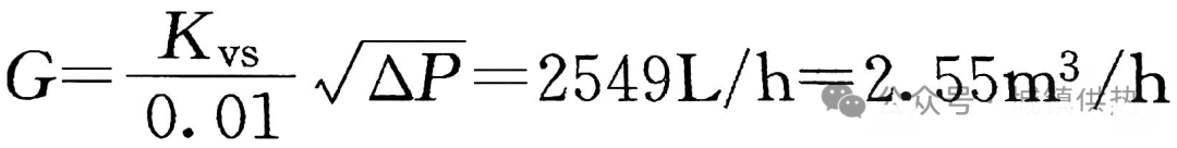 如某一个热用户,设计流量为2.5m³/h,地处供热系统的末端,在调节阀全开时通过设计流量的两端压差按20kPa(即2mH₂O)考虑,设计选择合适的平衡阀。通过公式(1)可计算出Kvs为