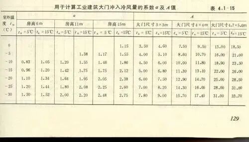 a, A—系数,查表 ;Vw---冬季室外平均风速,m /s