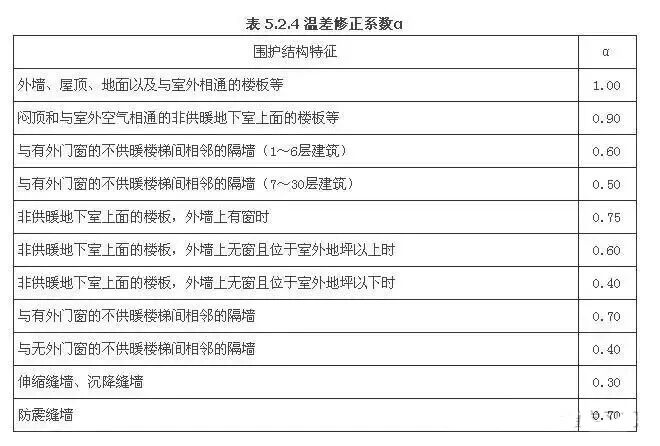 α——围护结构温差修正系数,按本规范表5.2.4采用;