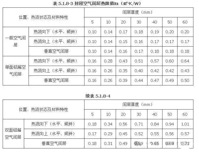 Rk——封闭空气间层的热阻(㎡·K/W),按本规范表5.1.8-4采用;