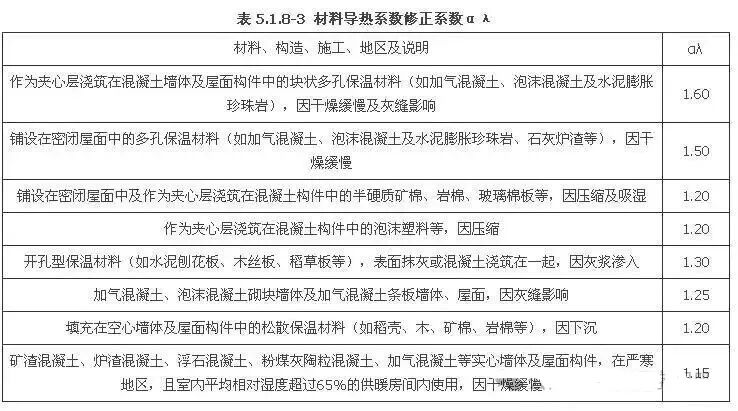 αλ——材料导热系数修正系数,按本规范表5.1.8-3采用;