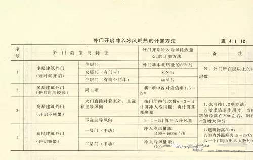b.每班开启时间>15min的外门,按照下 列经验公式计算: