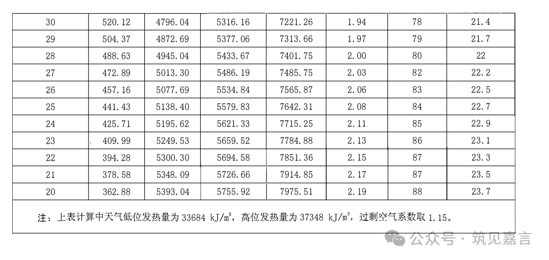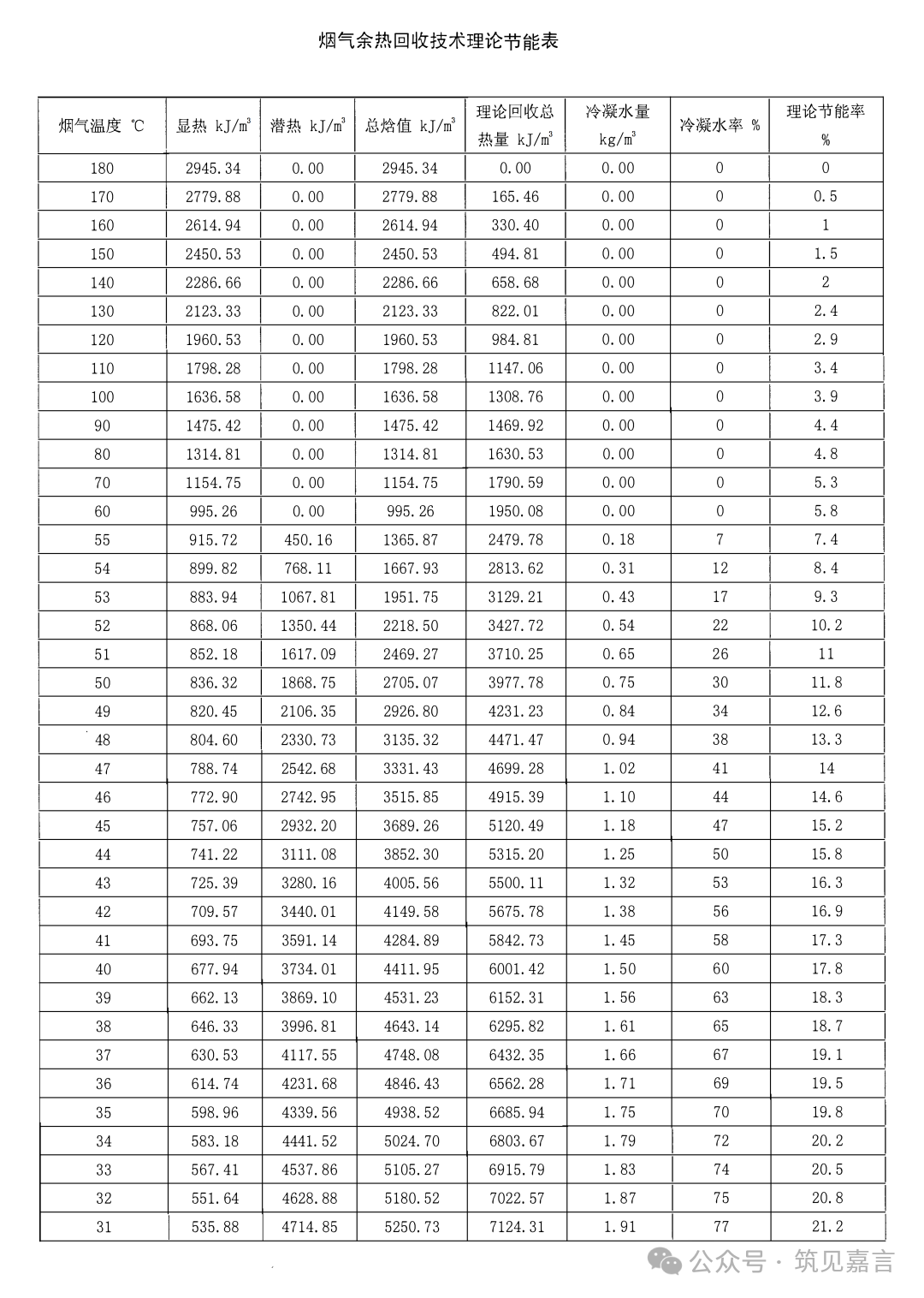 附烟气余热回收技术理论节能表: