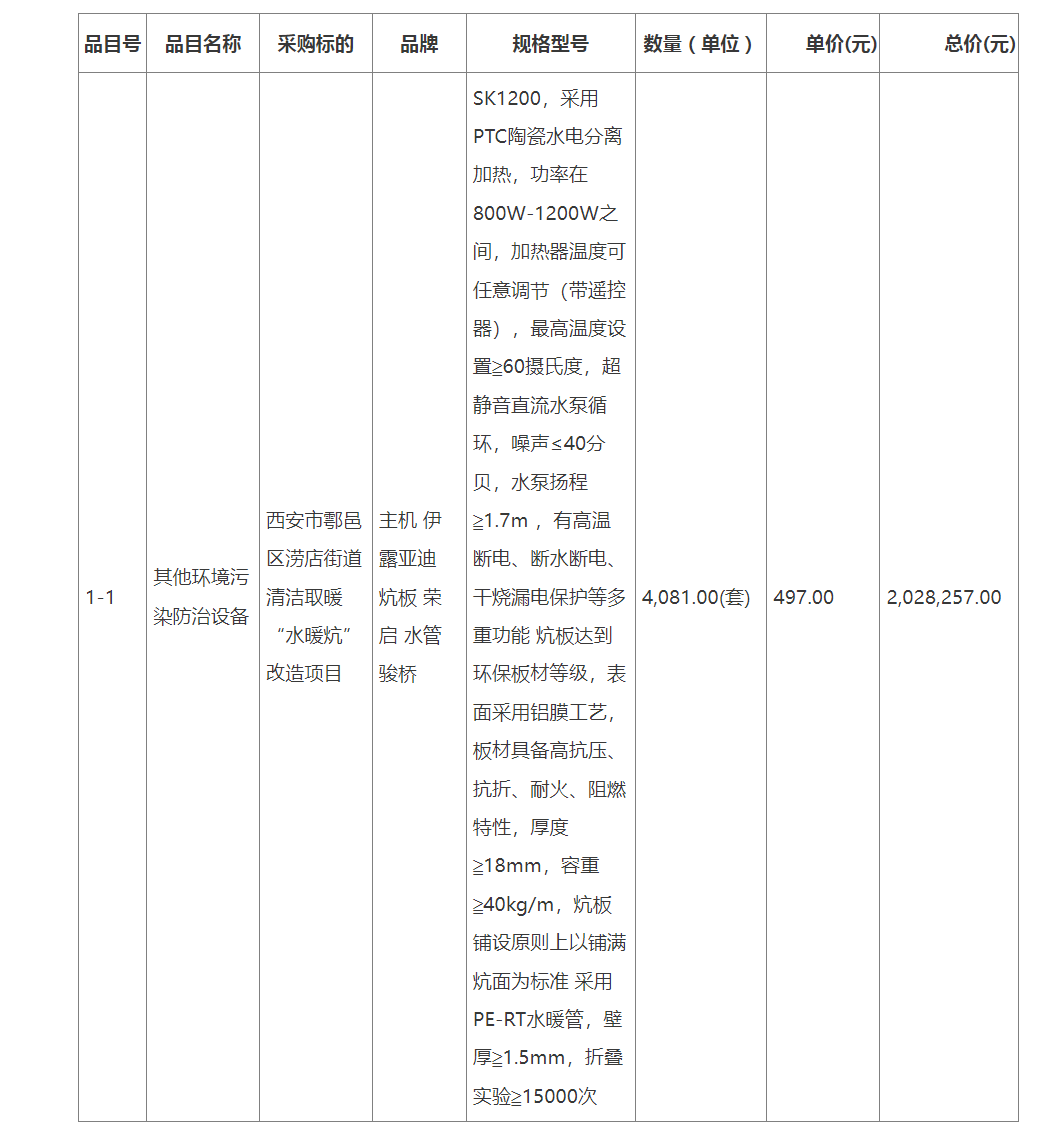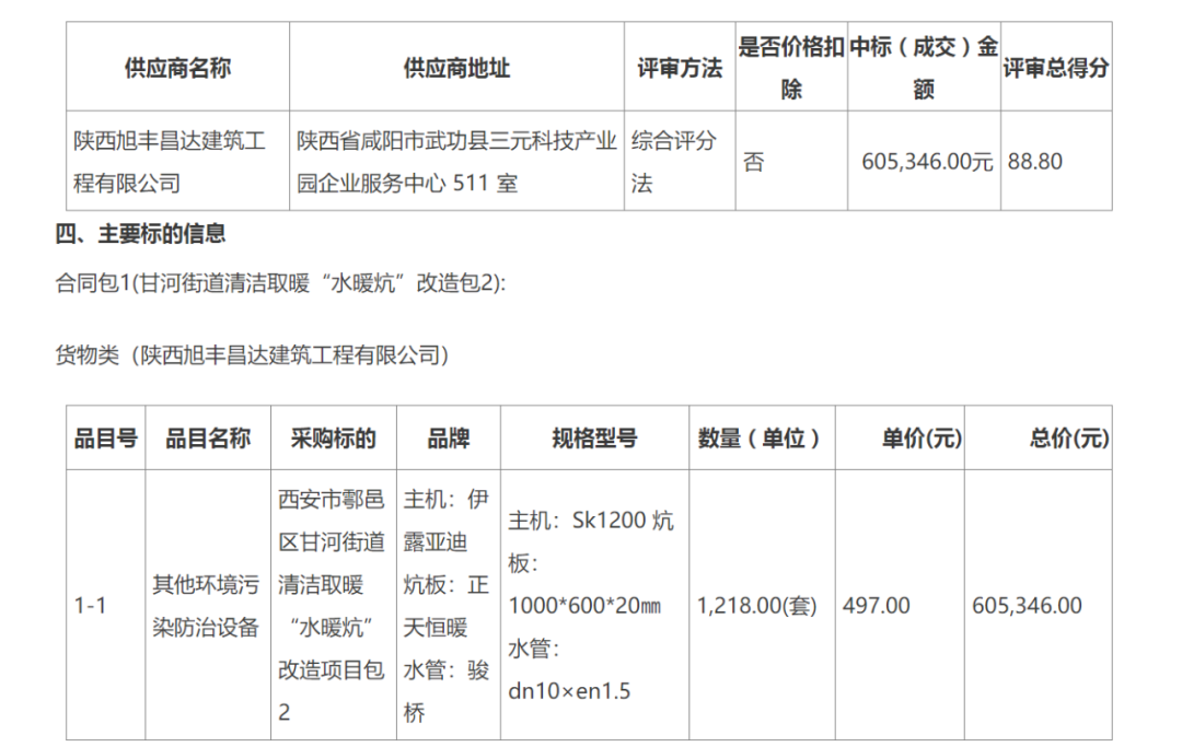西安市鄠邑区涝店街道办事处西安市鄠邑区涝店街道清洁取暖“水暖炕”改造项目中标(成交)结果公告