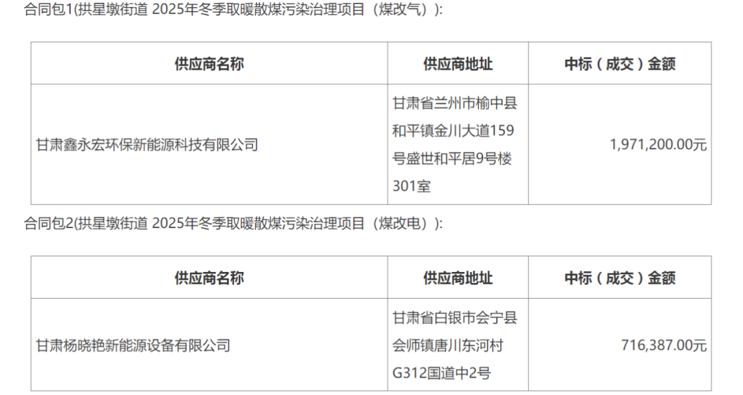 兰州市城关区人民政府拱星墩街道办事处拱星墩街道2025年冬季取暖散煤污染治理项目中标(成交)结果公告