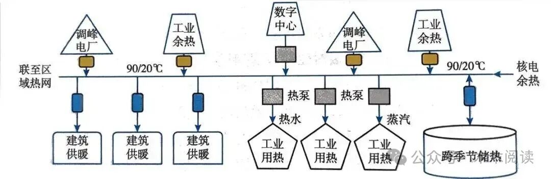 (2)促进清洁能源消纳:便于接入风电、太阳能、生物质能等间歇性或区域性清洁能源,作为调峰或补充热源。