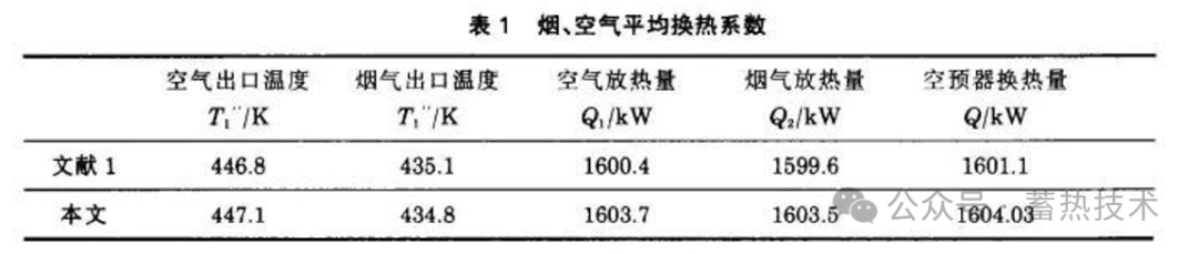 在求解过程中,空气平均换热系数使用公式(1),烟气平均换热系数采用公式(8),计算结果如下表所示: