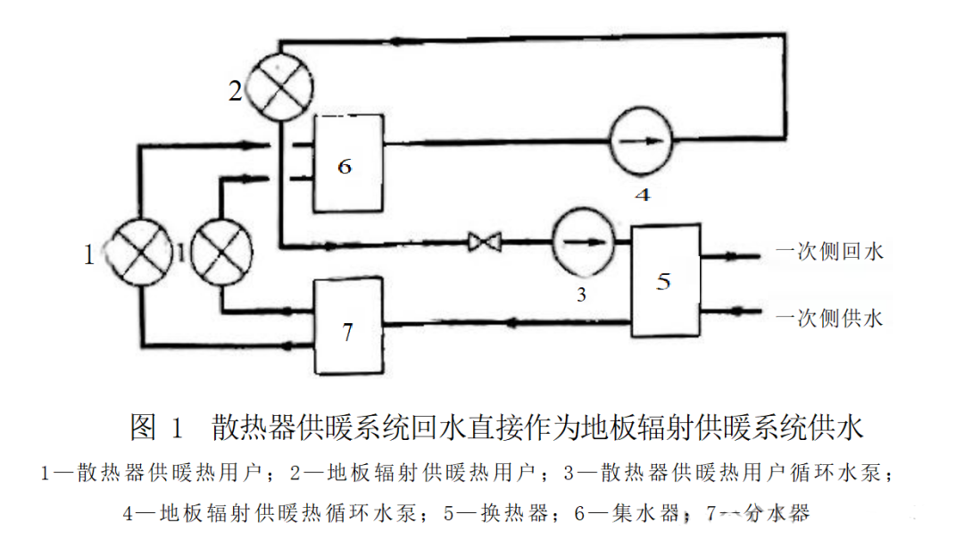 若散热器用户的回水,在水量、温度、压力上都能满足地暖用户需求,直接用回水管给地暖系统供水,是最节省成本的方案。
