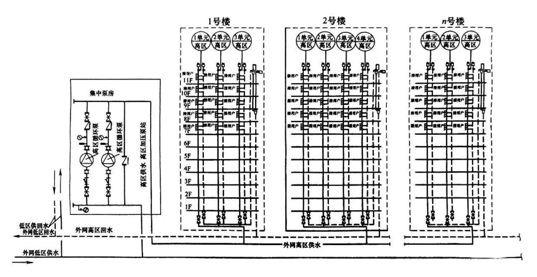 如果是建筑面积大的单栋高层建筑,或是成片的高层小区,更适合采用专用分区供暖方案。