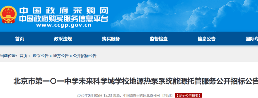 项目名称:北京市第一〇一中学未来科学城学校地源热泵系统能源托管服务