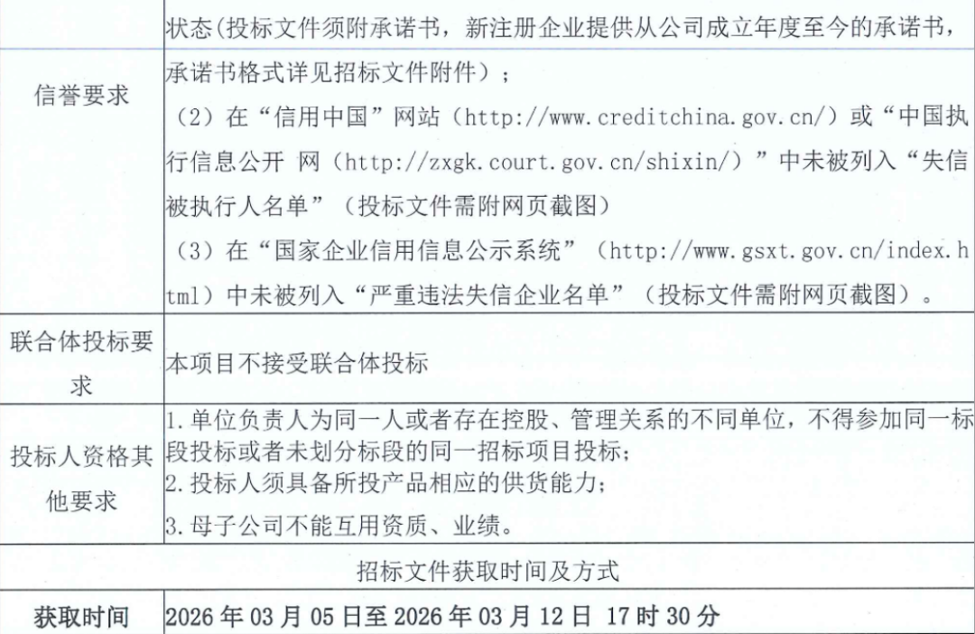 提交投标文件截止时间:2026年03月25日 09:30(北京时间)