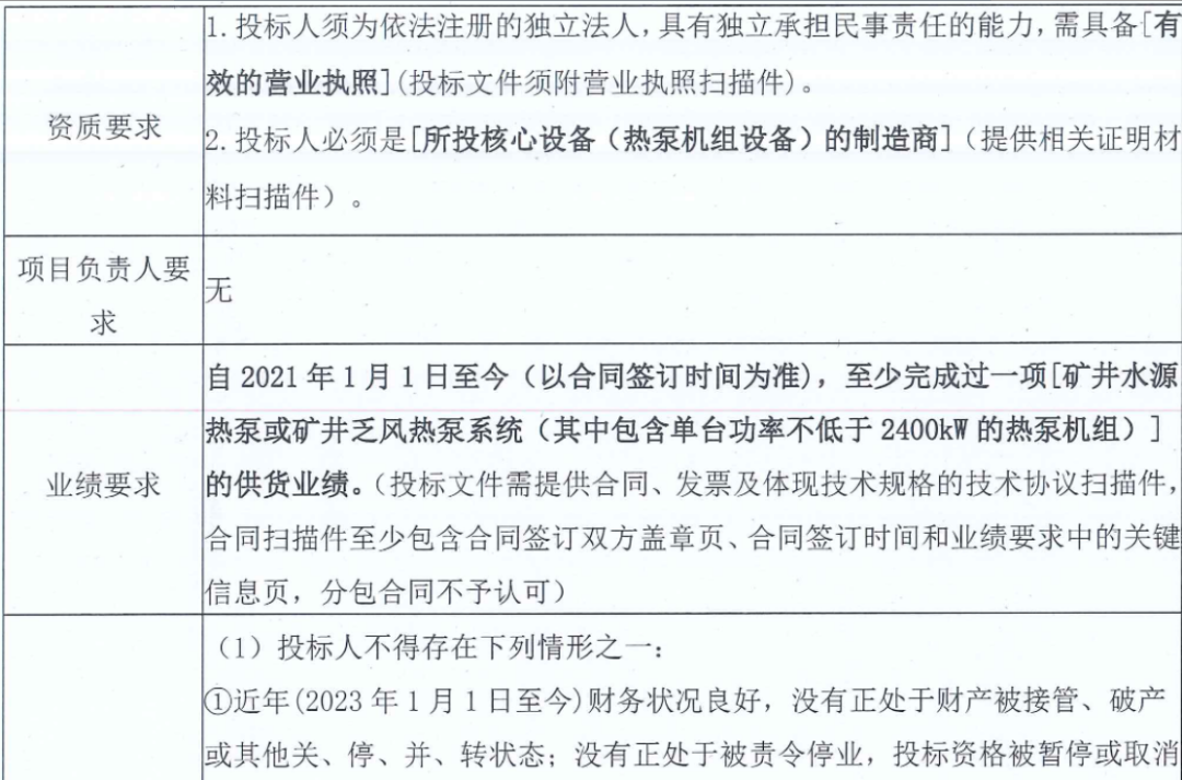 采购招标项目编号:CQYT2601-WZ048-CPMC4758-B110468T1220263-11951. 招标条件本招标项目 长庆油田分公司 2026年井场集输设备 复叠空气源热泵供热一体化装置带量采购招标 招标人为 长庆油田分公司 ,招标项目资金来自 其他 ,出资比例为 100% 。该项目已具备招标条件,现对其进行公开招标。2. 项目概况与招标范围2.1招标产品范围:本招标项目为一单一采招标,本项目预计采购金额3370000.00元(是否含税:☑ 含税 ☐不含税,其他说明: / ),采购物资品种详见货物需求一览表。本批次采购的A25大类复叠空气源热泵供热一体化装置,属油田公司集中采购二级物资,共计2台。该项目依据技术规格书、技术要求进行加工制造。本次采购结果有效期为中标通知书下发之日至合同履行完为止。2.2实施或交货地点:详见附表2.3交货期或供货周期:详见合同2.4技术标准及要求:满足国家法律法规及行业相关规范,具体详见招标文件及招标文件附件。2.5招标结果有效期:自中标通知书下发之日起至合同履约结束止。3. 投标人资格要求营业执照(投标人资格要求):投标人应为中华人民共和国境内注册的法人或其他组织,具有承担民事责任的能力(法人企业分支机构等不具备法人资格的投标人参与投标时,应持对应法人企业法定代表人身份证明及法定代表人出具的授权委托书方可参与投标)。提供统一社会信用代码的营业执照扫描件。财务要求(投标人资格要求):投标人应提供2024年度经会计师事务所或审计机构审计的财务审
