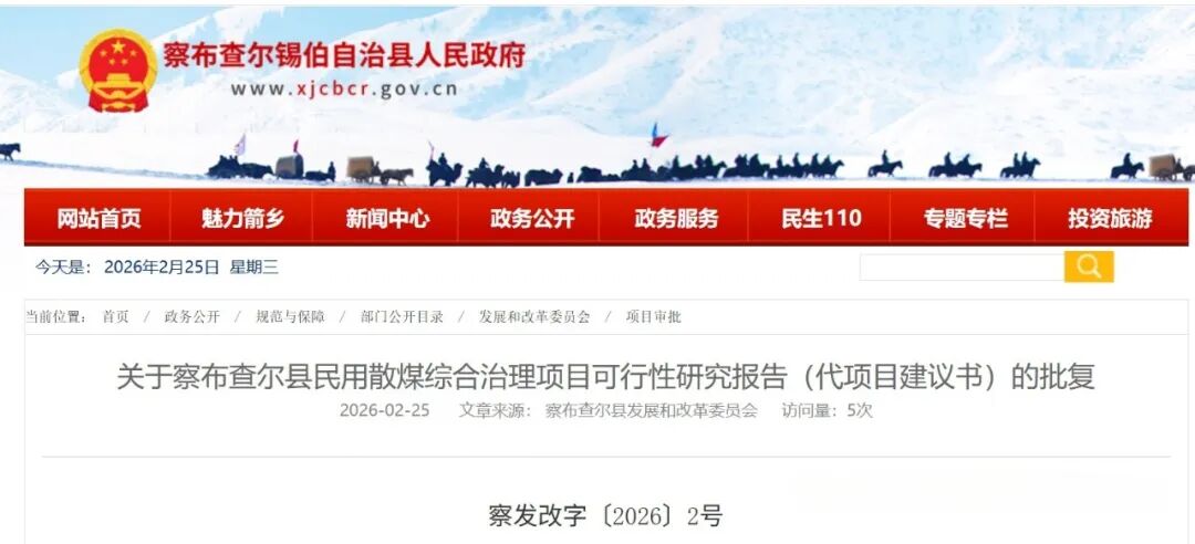 你单位报来《关于批复察布查尔县民用散煤综合治理项目可行性研究报告(代项目建议书)的请示》(察住建字〔2025〕95号)及有关材料已收悉。经县发改委研究,现批复如下: