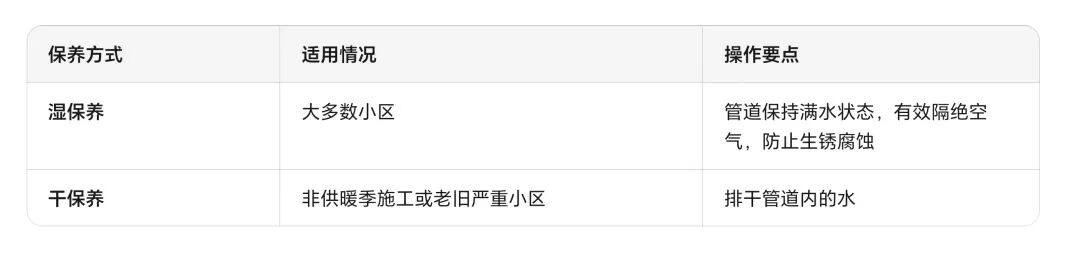 供暖结束后供暖公司会进行系统保养,分为两种方式:
